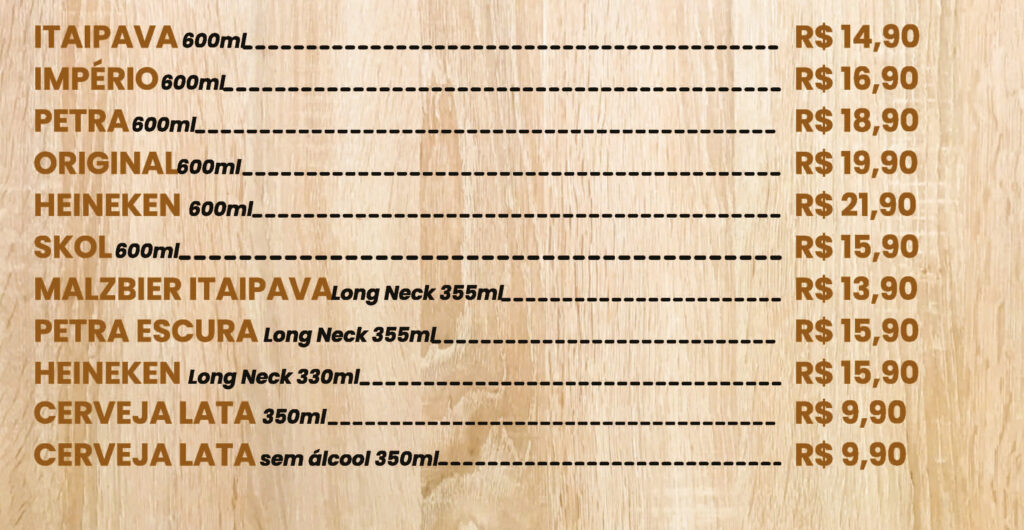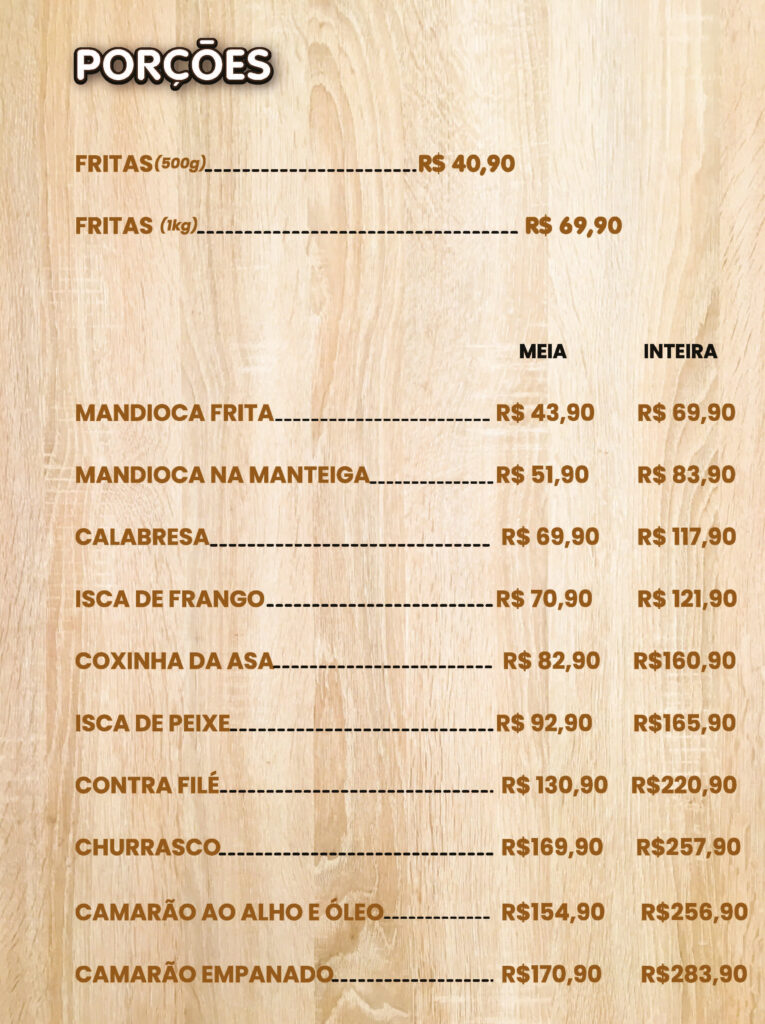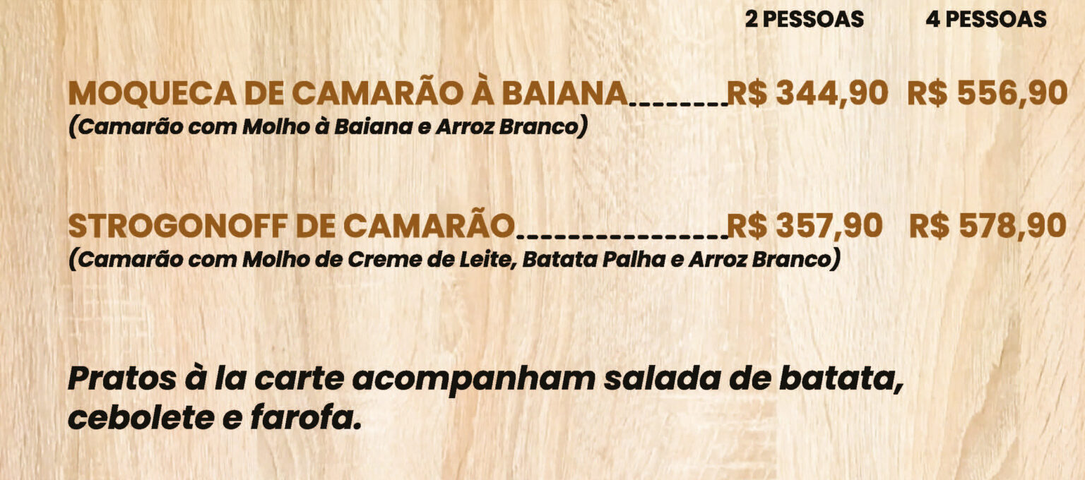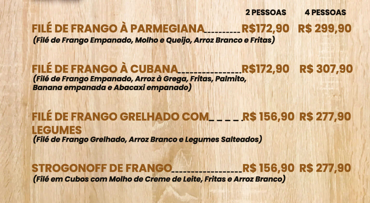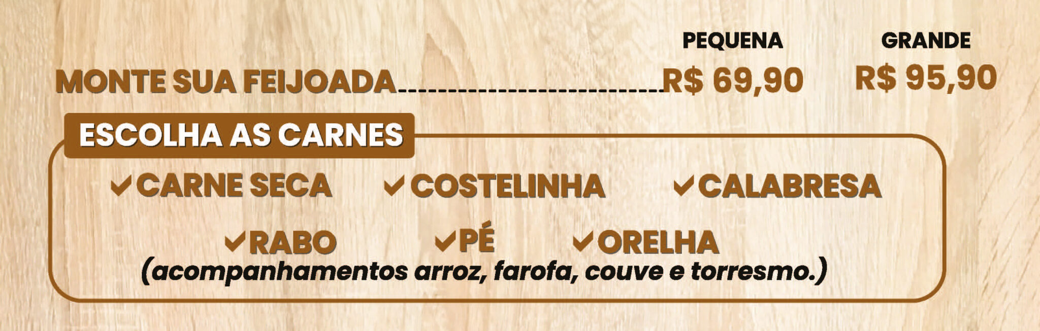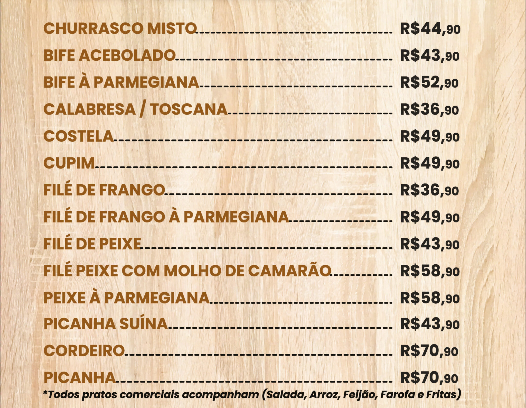 Acompanham Arroz, Feijão, Farofa e Fritas.