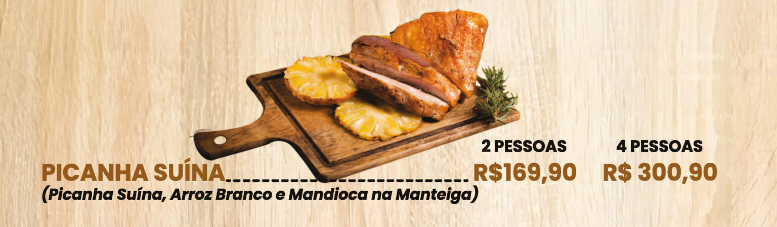 Escolha suas carnes Picanha, Alcatra, Maminha, Bife Ancho, Cupim, Costela, Picanha Suína , Coxinha da Asa, Linguiça, Coração R$ 140 - 1KG