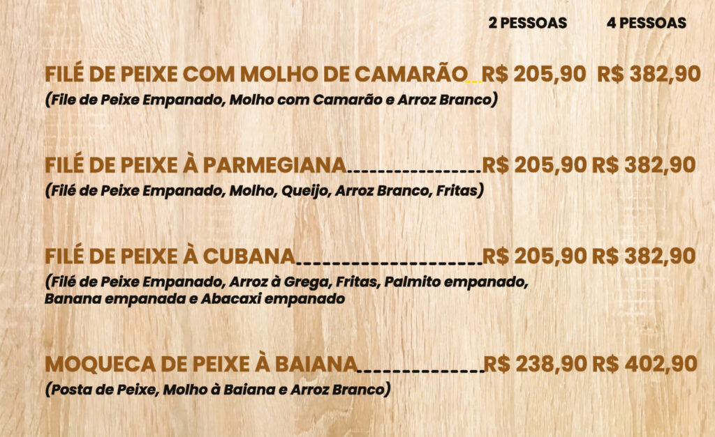 (Posta de Peixe ao Molho de Camarão, Arroz Branco e Pirão)